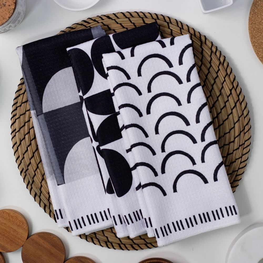 Our absorbent dish towels make quick work of damp hands and wet dishes. These towels are a modern aesthetic addition to your kitchen towel collection, this set also makes the perfect housewarming or hostess gift, and pairs perfectly with a bottle of wine.