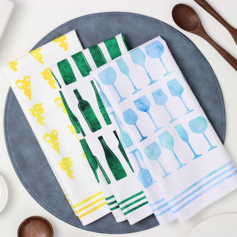Our absorbent dish towels make quick work of damp hands and wet dishes. These towels are a modern aesthetic addition to your kitchen towel collection, this set also makes the perfect housewarming or hostess gift, and pairs perfectly with a bottle of wine.
