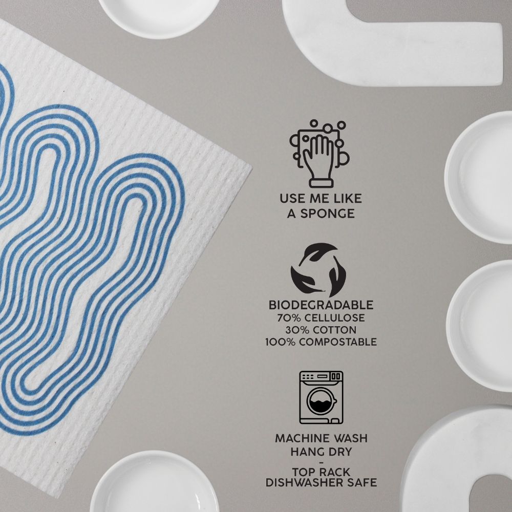 What makes these dishcloths truly special is their eco-friendly nature. Unlike traditional disposable paper towels, our Swedish Dishcloths are reusable and sustainable. They are designed to last longer and reduce waste, making them a fantastic choice for anyone looking to make a positive impact on the environment. When it's time for a clean, simply toss them in the washing machine, or the top rack of you dishwasher, and they're ready to go again.